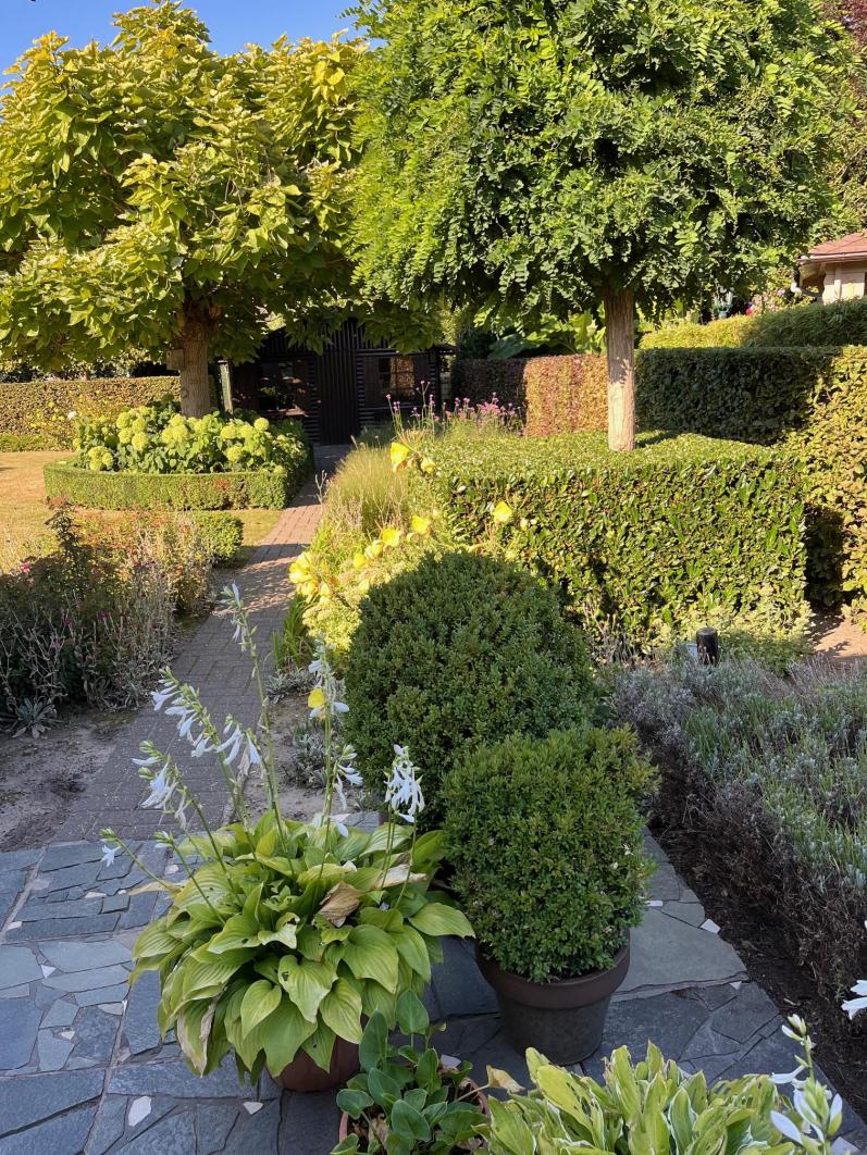 | Tuintekst | prachtig aangelegde tuin met tuinhui en vijver |